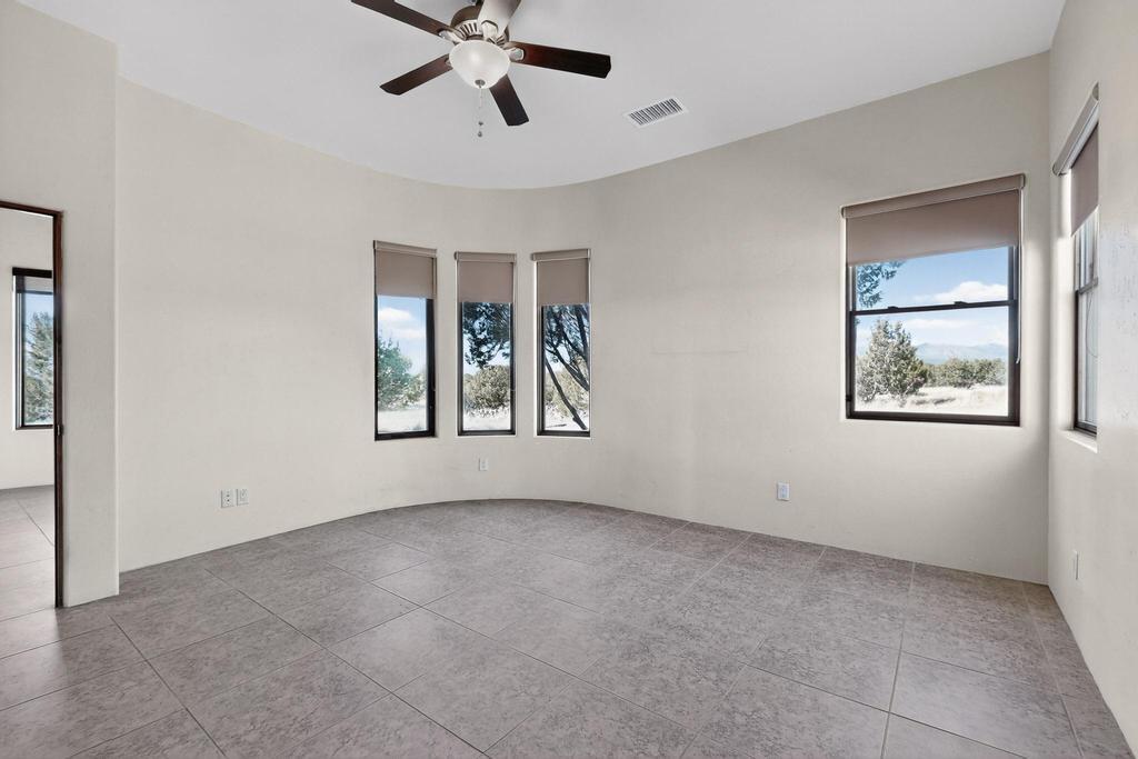As you come up the private drive to the custom SW gate, you know you have arrived at home. Each evening you watch the sun set on the Manzano Mountains. You never tired strolling along the walking trails to admire the night sky full of stars. You wake every morning renewed to take in the breathtaking views again. Custom cabinets and red dragon granite counters make it a pleasure to drink coffee at the kitchen bar. This is your dream home with two separate offices or turn them into bedrooms. Cozy around the wood stove in the living room that opens to the dining area and onto the large covered patio with room to entertain. Each detail of this home is designed to bring you joy and provide you with your own personal paradise on 40+/- wooded acres in the heart of the Land of Enchantment.